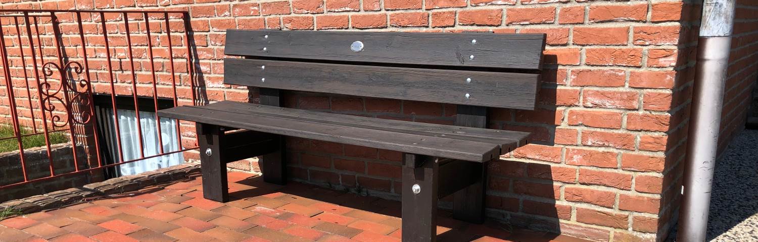 Die Bank wurde komplett auseinandergebaut, geschliffen und neu gestrichen. Alle Schrauben und Muttern wurden ersetzt und ein Schild zu Ehren von Fredi Lakies angebracht.